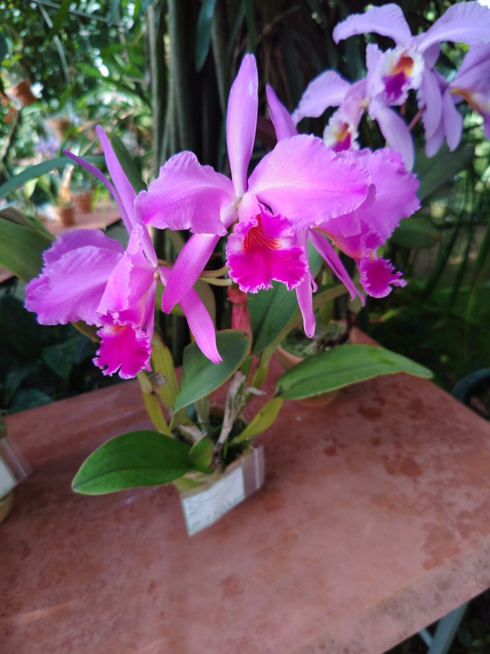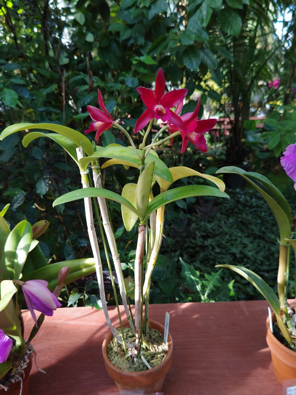 Cattlianthe(Ctt.)。よく揃って咲いています。Gur. bowringiana × C. labiataの組み合わせ。