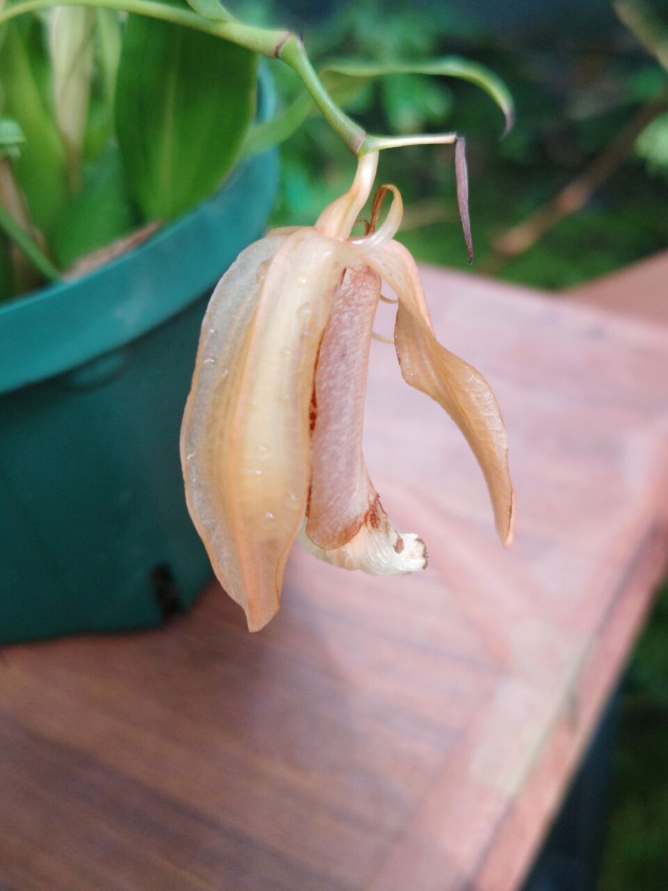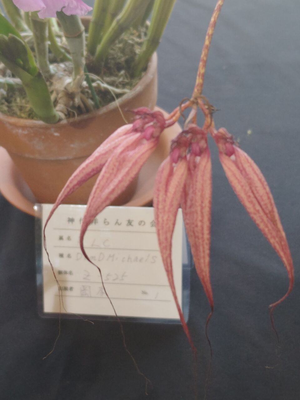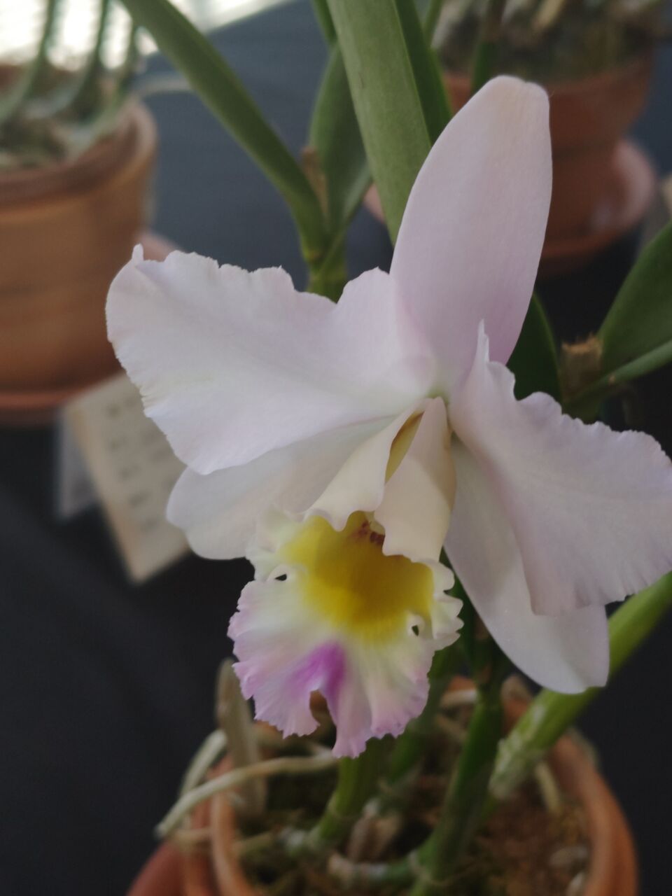 Brassocattleya(Bc.)と表記されていましたが、おそらく「Cahuzacara Miura Otome」ではないかと思います。Bc.はBrassavola × Cattleyaですが、Cattleya(C.)からGuarianthe(Gur.)が分離され、Brassavola(B.)からRhyncholaelia(Rl.)から分離されたからですかね。Cahuzacara(Chz.)は、B. × C. × Gur. × Rl.ということです。