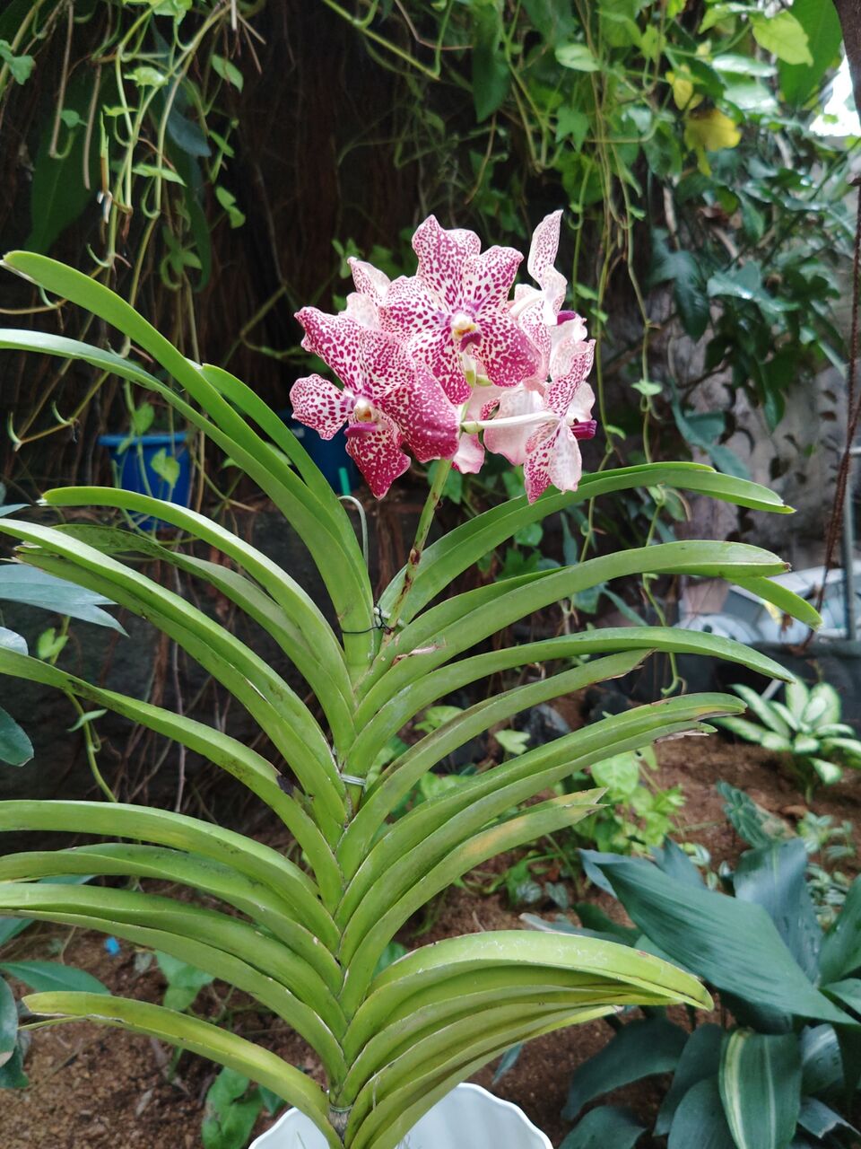 Vanda系交配種。V. sanderiana × V. coelurea × V. deareiなどの組み合わせ。