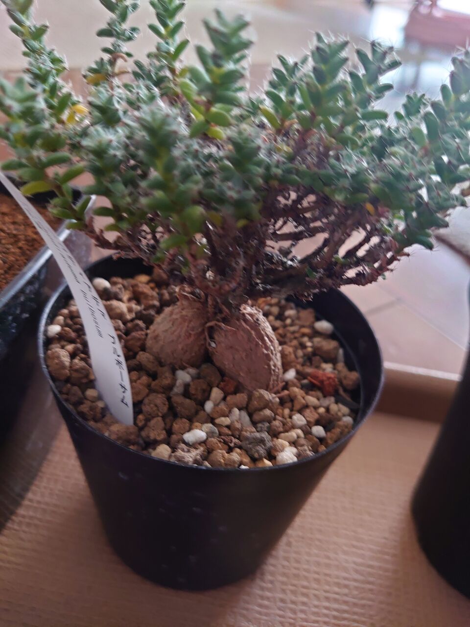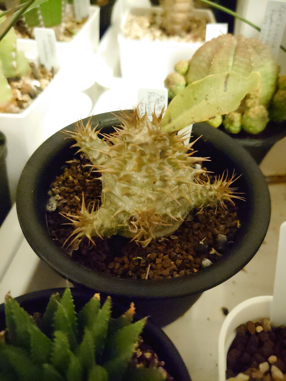 ちなみに、一般的には九輪塔の学名は鷹の爪の変種、var. chalwiniiとされています。ネットでは概ねそうです。これは、1906年に命名されたHaworthia chalwinii Marloth & A.Bergerの系列です。ここから鷹の爪の変種とされ、1943年命名のHaworthia reinwardtii var. chalwinii (Marloth & A.Berger) Resende、1983年命名のHaworthia reinwardtii f. chalwinii (Marloth & A.Berger) Pilbeamがありますが、これらはcoarctata系と同種とされています。