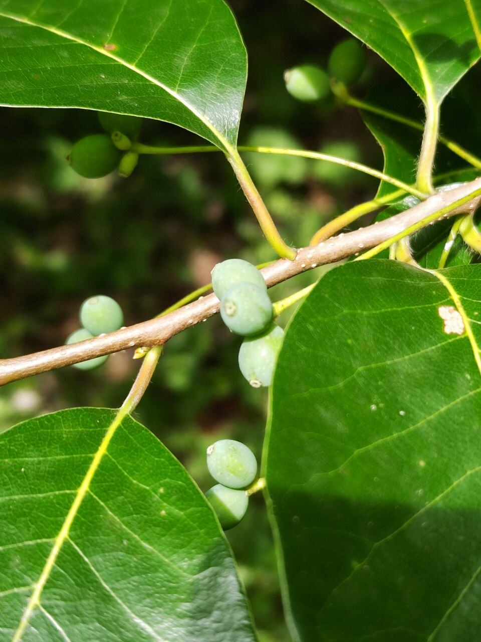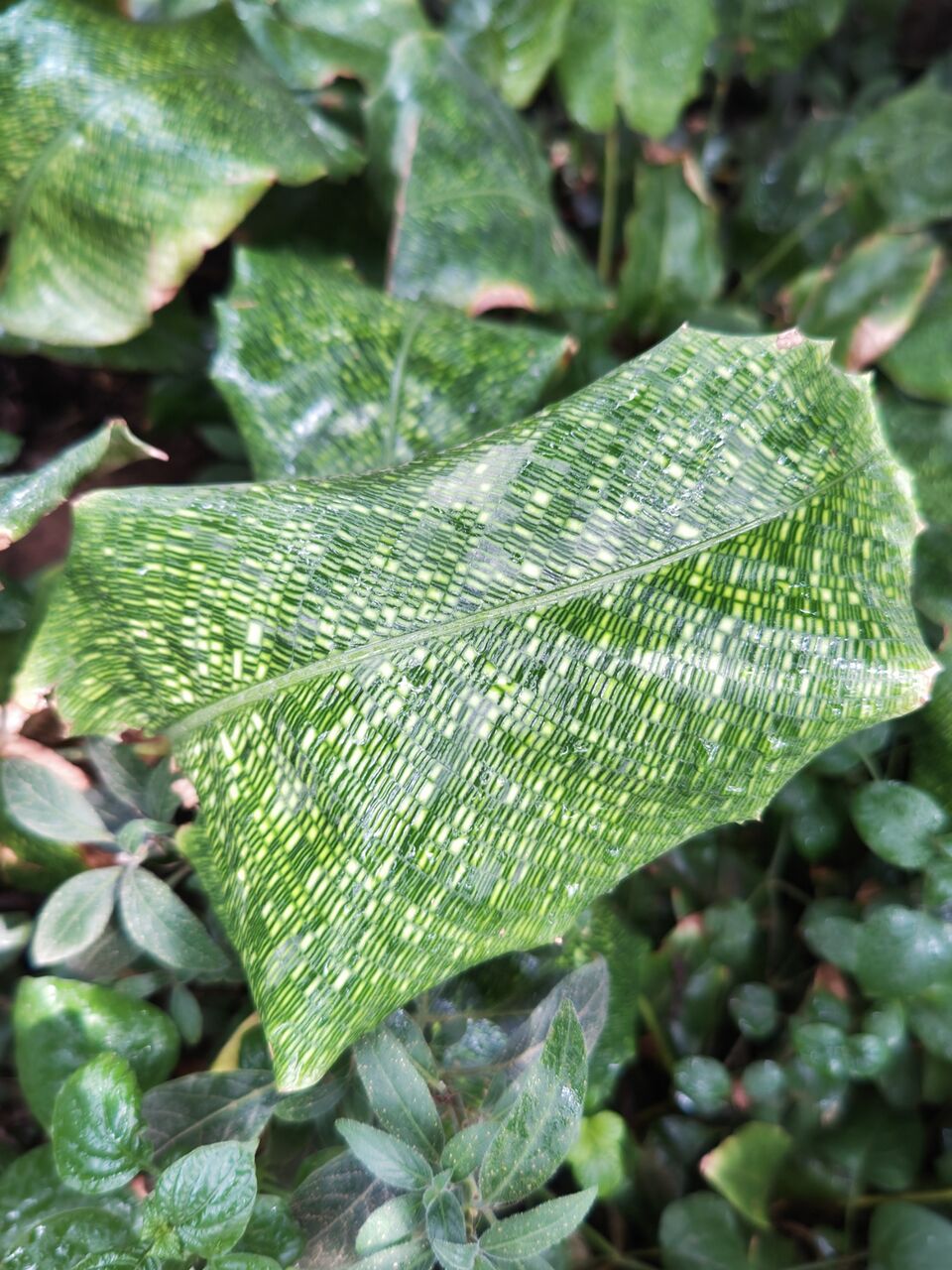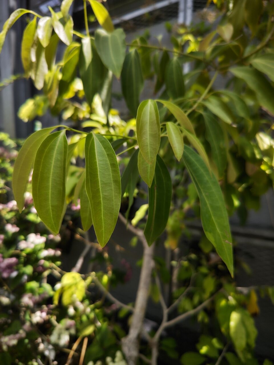 シナモンの特徴的な葉。シナモンは植物園の温室では割りと見かけます。