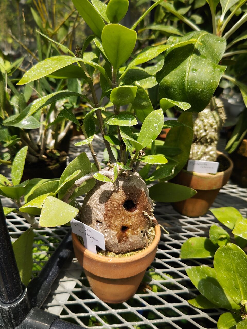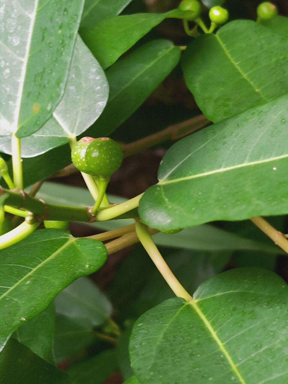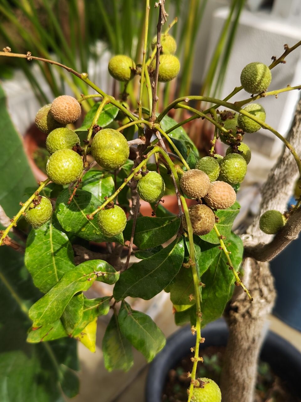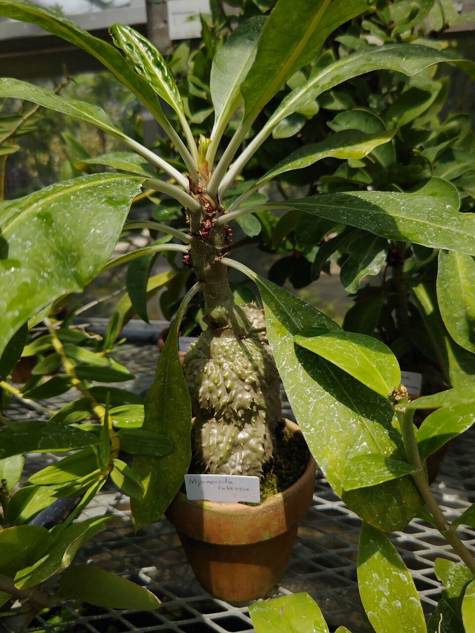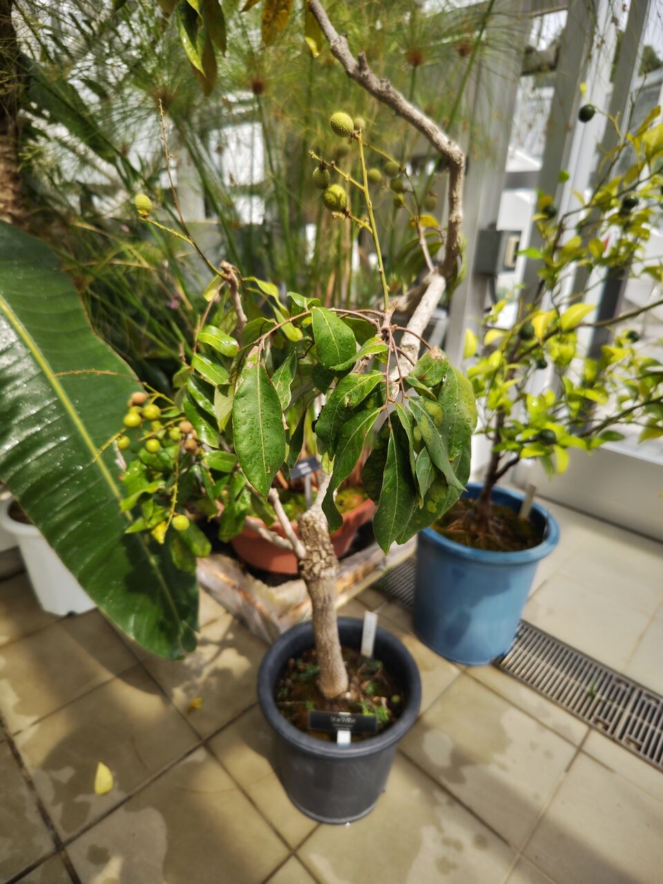 ブラシノキの仲間(Callistemon)やチョウジ(Syzygium aromaticum)などフトモモ科の植物は植物園でそれなりに見ていますが、フトモモは初めて見ました。しかし、近年のオージープランツの流行によりフトモモ科植物も見かけるようになってきました。レンブ(S. samarangense)のような面白い実がなります。