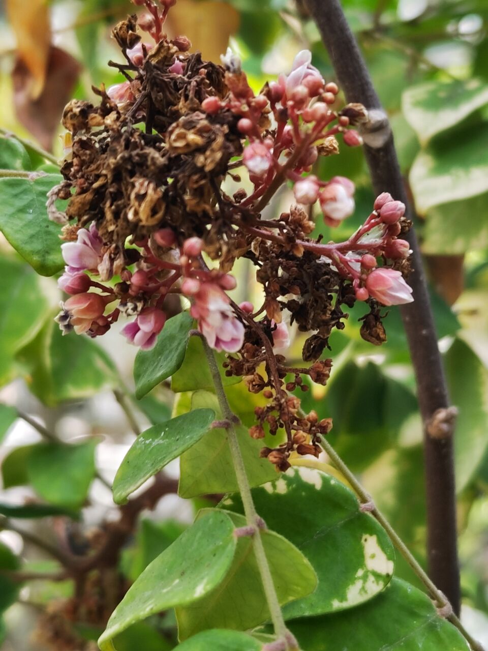 いわゆる、「スターフルーツ」ですが、花が咲いていました。その面白い果実は夢の島熱帯植物館で鈴なりになっているのを見たことがあります。花は初めて見ました。