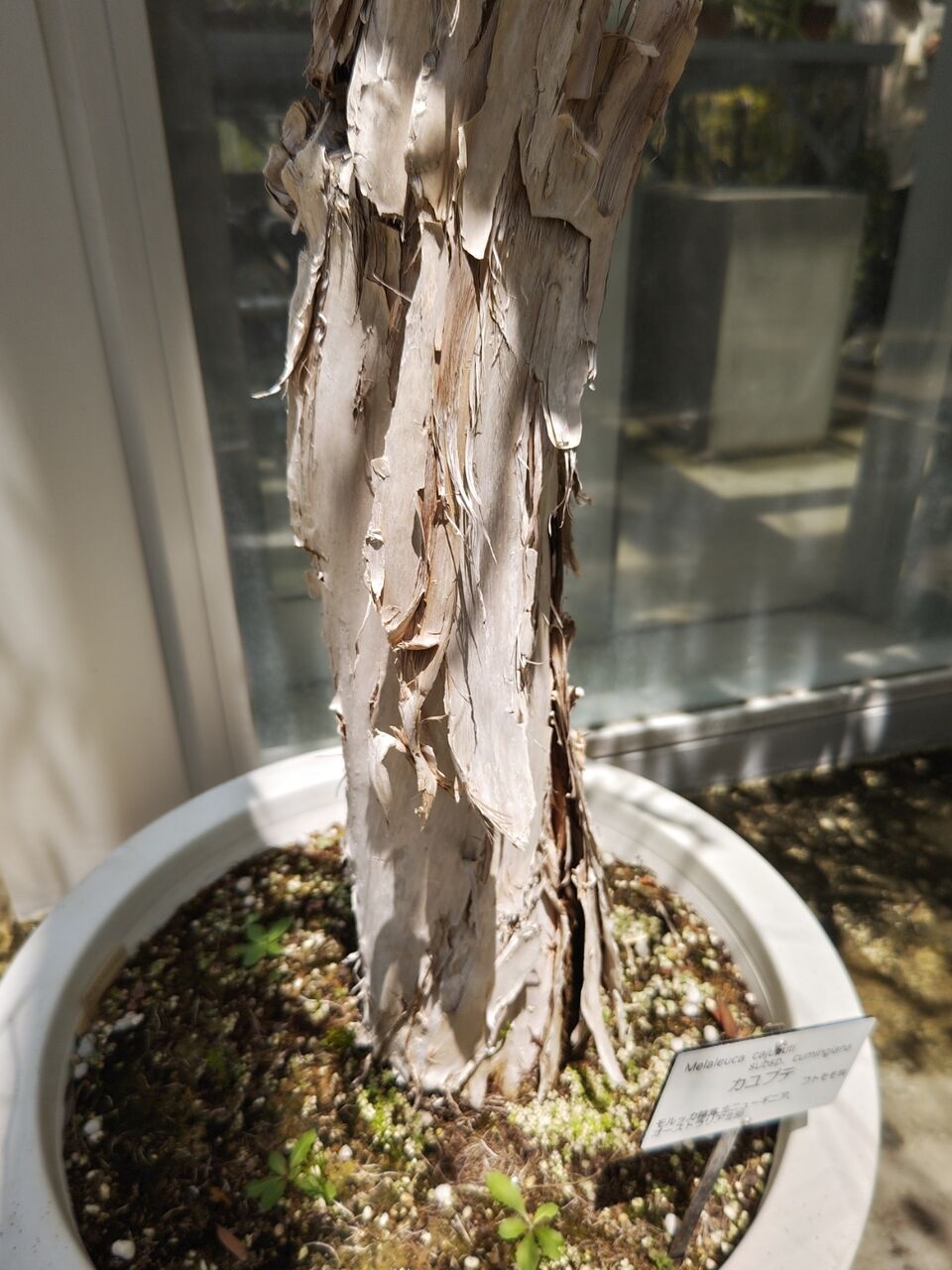 フトモモ科ですが、オーストラリアだけではなく東南アジアに広く分布します。亜種クミンギアナは沿岸部の湿地林に生えるそうです。フトモモ科ですからブラシ状の花が咲きます。カユプテオイルと呼ばれるエッセンシャルオイルとして利用されます。