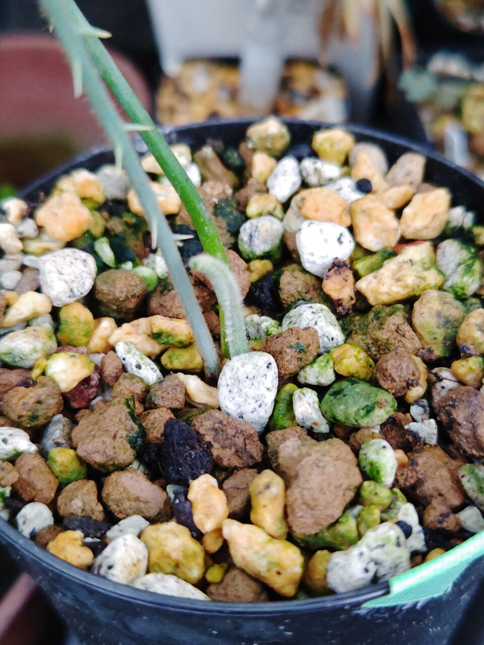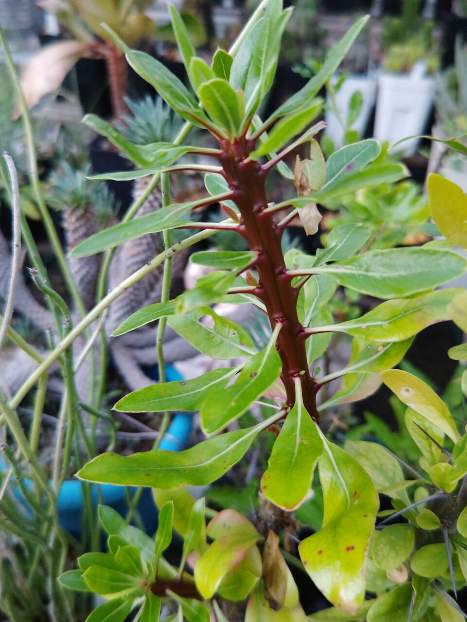 オコテレナエはよく生長しました。写っている赤い茎の部分は今年伸びたものです。オコテレナエはFouquieriaの中でも茎が太いですね。