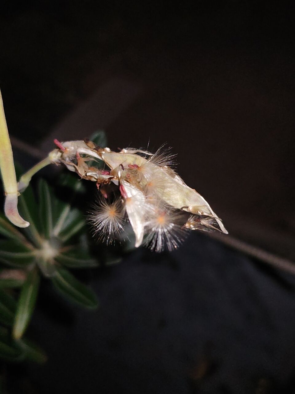 デンシフロルムの果実が開裂しました。タンポポのような綿毛があり、種子は風で飛ばされるタイプです。しかし、自家受粉っぽいので、種子はスカスカしておりおそらく粃みたいです。