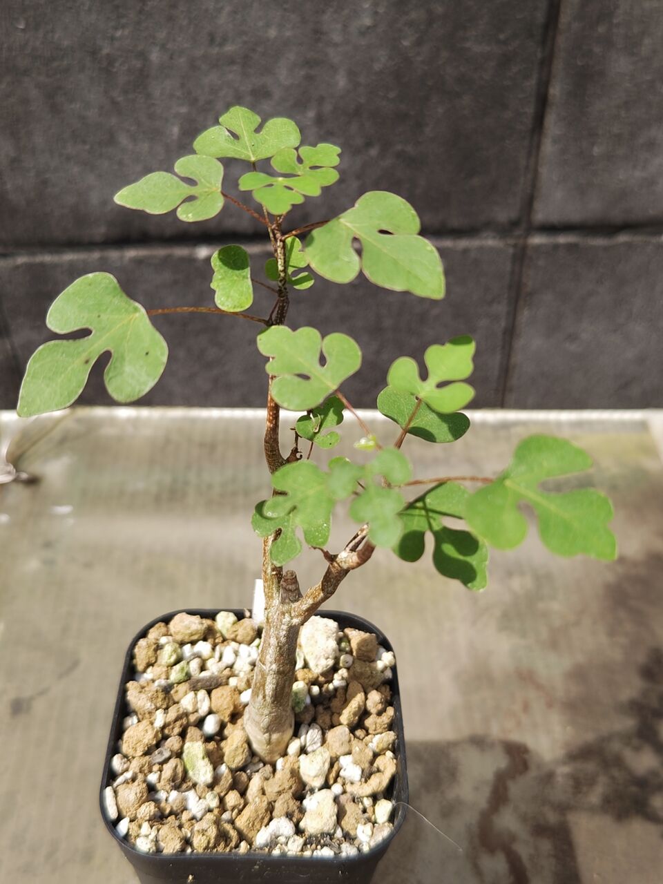 オラボエンシスは葉が細かく切れ込んでかわいらしいですね。このサイズで樹皮がしっかり出来ていますから、アデニアには珍しくコルク層が発達するのかも知れません。